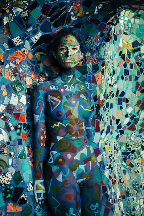 CollectionThis series, shot in Venice, California in June 2020 with Brazilian model Giulia Seabra, was an experiment on the absorbent nature of mosaic. The images explore the way in which mosaic tiles and patterns can absorb and reflect light, creating unique visual effects. By experimenting with this medium, the series aims to highlight the versatility and expressive potential of mosaic as an artistic material.
